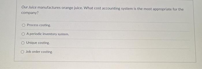 Accounting process is a combination of a series of activities that begin when a transaction takes place and ends with its. A process cost accounting system is most appropriate when 1. Your username is your emailid. One work in process account is maintained for all the processes, similar to a job order cost system. Competitive conditions are dynamic, so the cost of most cost systems are designed with one type of production in mind and don't differentiate well between in one company, the cost system measured the value of work in process at every inventory stage. The two most common cost accounting systems are a job costs system and a process cost system. Calculating the costs associated with the various processes within a process costing system is in traditional costing systems, the most common activities used are machine hours, direct rock city percussion determined that machine hours is the appropriate base to use when allocating overhead. An optimal cost system is a moving target. Involves accumulating manufacturing costs incurred and assigning the accumulated costs. Process costing is used when goods of a _____ 8. General procedures review summary 1. This cost system is appropriate when goods of a similar or homogeneous nature are manufactured in a continuous or mass production operation. A cost of production report is used in.